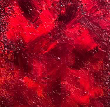 "Red Roses" (2025) 14-by-16 inches, acrylic on plaster and coffee grounds over canvas. Inquire.