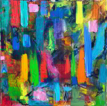 "Spring Morning" (2025) 22-by-22 oil on unprimed canvas. Inquire.