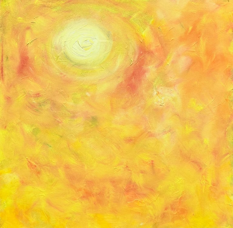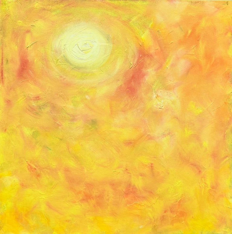 "Daybreak" (2025) 22-by-22 oil on unprimed canvas. Inquire.