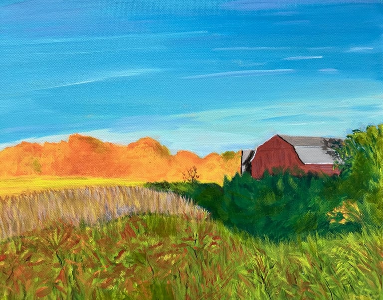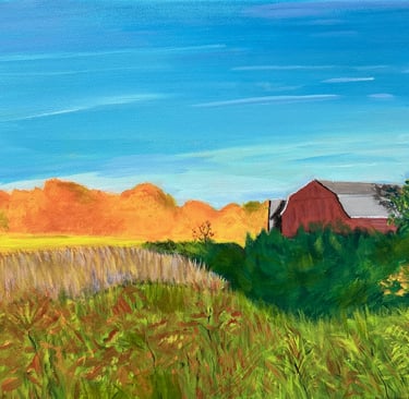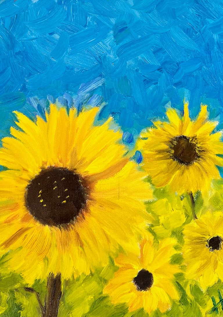 "Spring Morning" (2025) 22-by-22 oil on unprimed canvas. Inquire.