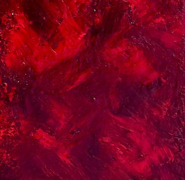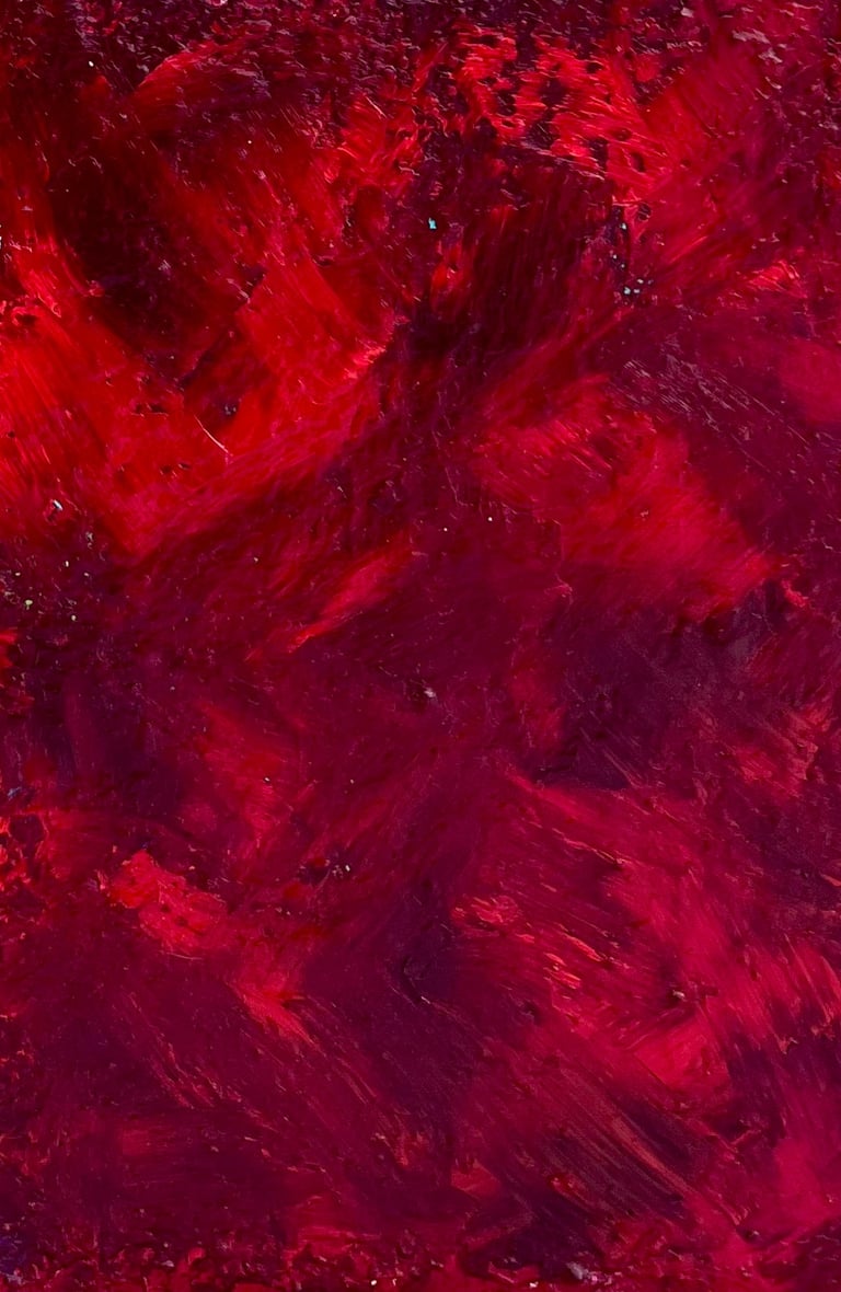"Red Roses" (2025) 14-by-16 inches, acrylic on plaster and coffee grounds over canvas. Inquire.