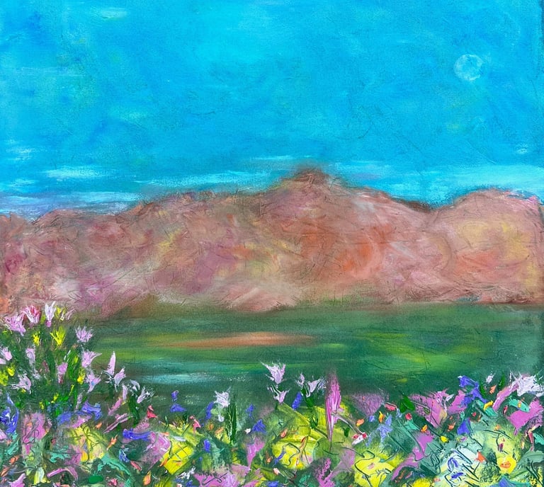 "Nightfall" (2025) 22-by-22 oil on unprimed canvas. Inquire.