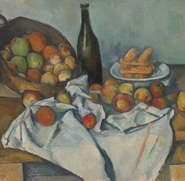 Paul Cézanne (1839-1906): Pablo Picasso called Cézanne "the father of us all," referring to his groundbreaking work to shift perspective (as in "Basket of Apples," 1893, Art Institute of Chicago, Helen Birch Bartlett Memorial Collection). His work led to Cubism and helped hew a path to modern art. Look carefully at this work - and others - and you'll see how he's beginning to see from multiple perspectives.